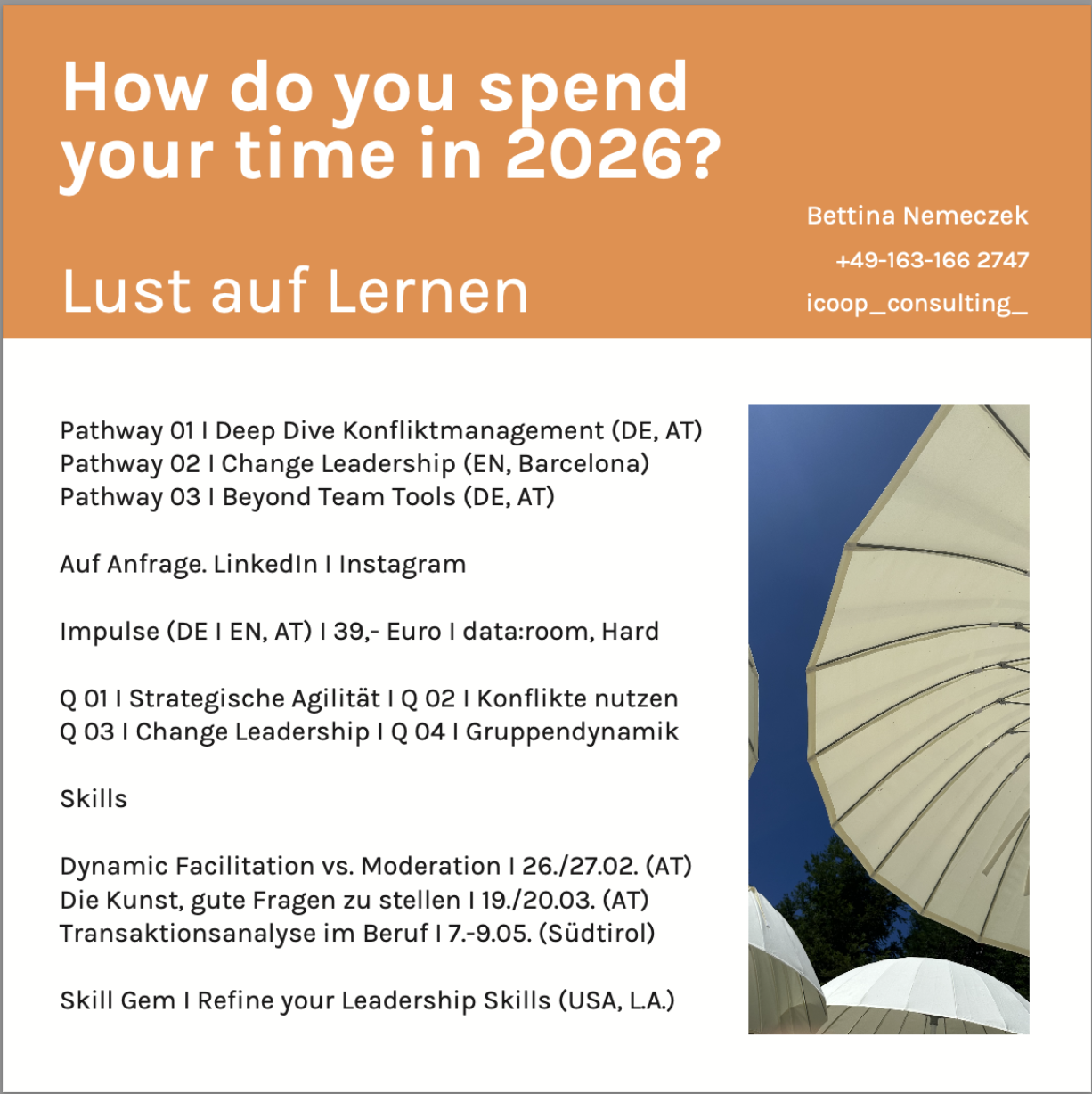 This - in its essence - agile approach rarely leads to blindspots, sugar coating or dead ends. As a Senior Consultant, Founder and systemic Consultant-Trainer and Lecturer (e.g. at Daimler, isb Wiesloch, University of Passau) my standards are known as rather high, demanding and worth the effort.